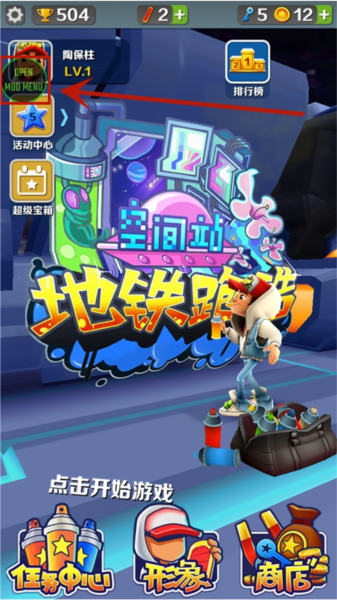 4、在游戏主界面左上角悬浮的圆形图标【OPEN MOD MENU】就是我们的内置菜单,点击打开。