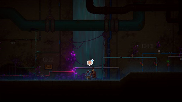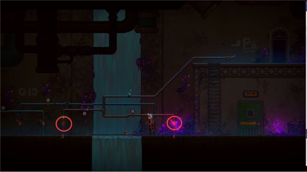 随后继续向右移动,拉下红色蒸汽扳手,一路跑到最右侧即可触发剧情跌落。
