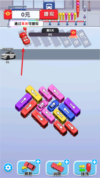 《挪了个车红包版》是一款以停车解谜为核心的休闲益智游戏。玩家需要在拥挤的停车场中,通过合理移动车辆,按顺序将目标车辆成功驶出。游戏采用关卡制推进,每通过一关即可获得奖励,积累一定数量后可兑换红包。整体玩法简单直观,适合用来打发碎片时间。