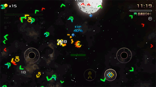 1、探险途中将遇到各式各样的外星物种,透过触屏进行移动、射击等操作;