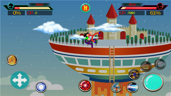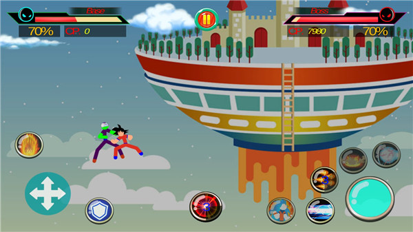 1.这游戏的美术风格挺有意思,就是那种简洁的火柴人造型,但又混了点龙珠的元素进去。角色辨识度挺高,视觉上看着挺新颖,动感也还行。