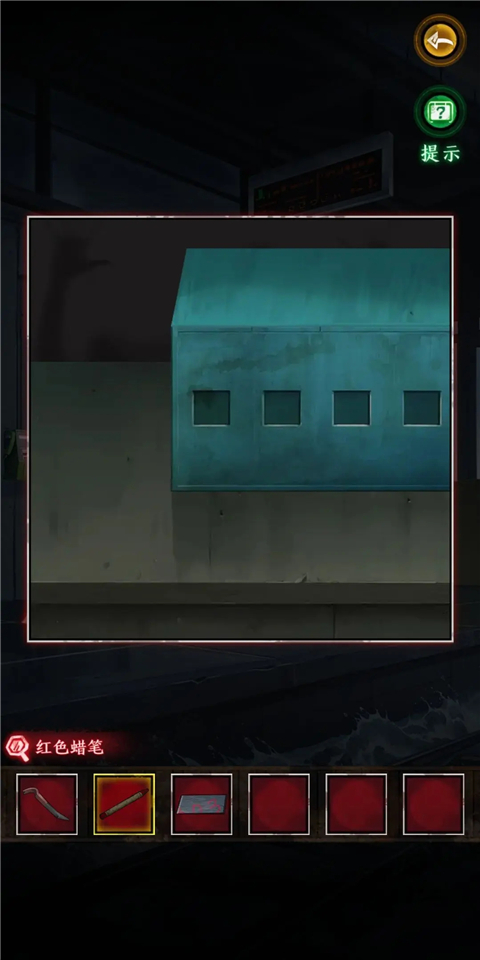 8、地上有个水桶,捡起来。跑到站台那儿去装满水,回来对着那个着火的车票回收箱泼上去。接着把线连好,就能拿到黑蜡笔和一个空水桶。