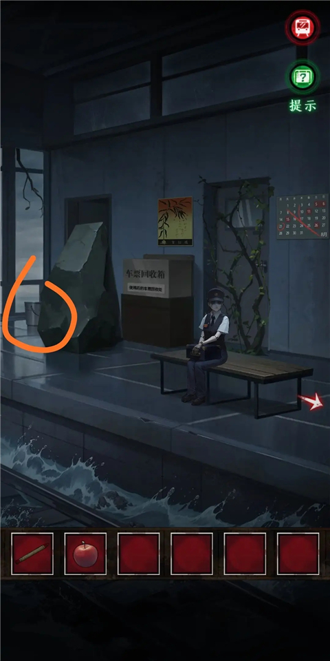 13、拿着空桶再跑一趟站台装满水。根据笔记本里的提示,先对这桶水用火柴,然后再把苹果扔进去。