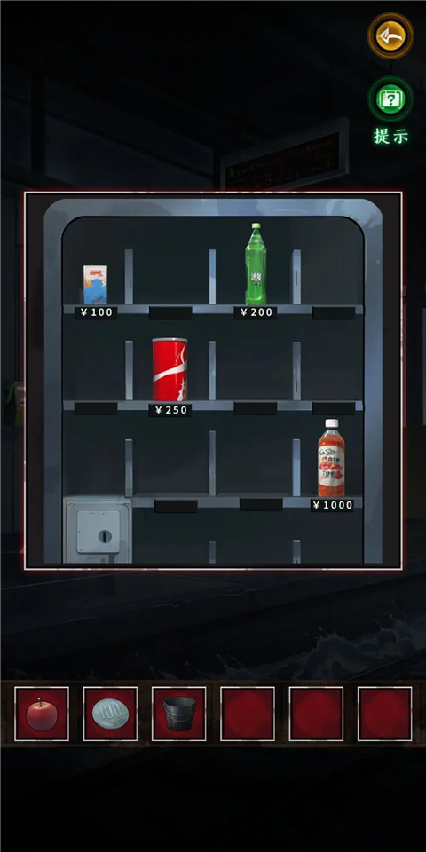 12、在自动贩卖机的右下角能找到一枚硬币。先用胶带把断掉的电线粘好,然后投币,再点左上角的蓝色盒子,就能拿到火柴了。