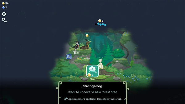 6、剩下的就是重复劳动了,不停地召唤龙蛋,孵化更多的龙,用金币驱散迷雾,目标是让整个森林重见天日。
