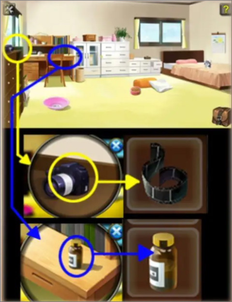 1、点屏幕左边的相机,拿到胶卷。然后去书桌右边,把药水也拿了。