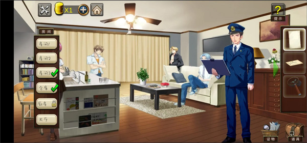 这游戏的核心玩法,老玩家应该都懂,就是经典的密室解谜。故事背景很简单,周末朋友来家里聚会,你前脚刚出门,后脚狗就没了。线索都指向是某个熟人干的,这就很气。所以你得跟警察联手,一步步推理,把狗找回来,顺便看看是哪个二五仔下的手。