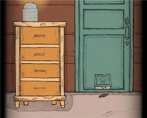 把鱼干塞到门下面的小洞,有只猫会把鱼叼走,然后给你留下柜子第二格的钥匙。
