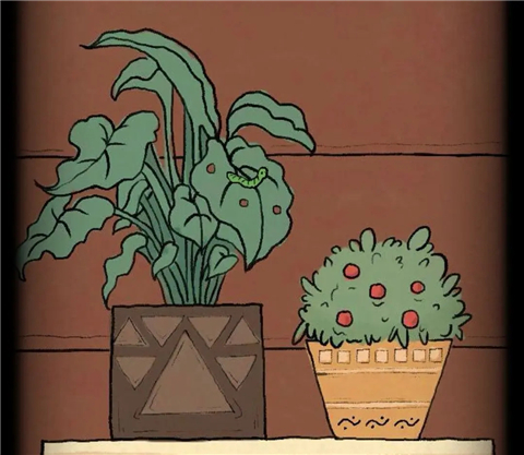 用装满水的喷壶去浇左边的盆栽,会长出一条青虫。