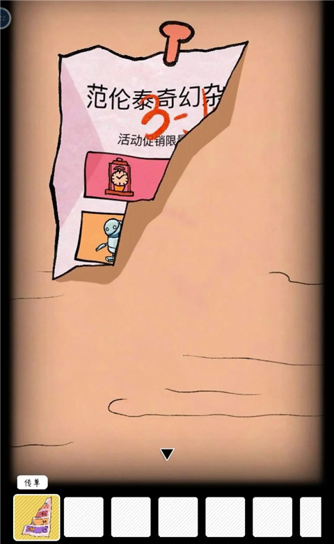 拿到一张残缺的传单,把它放回原位。