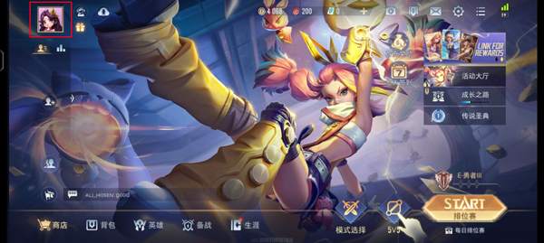 1、进游戏主界面,点你左上角那个头像。