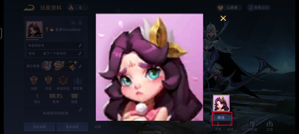 2、进去之后再点一下你的头像,右下角有个“修改”按钮,戳它。