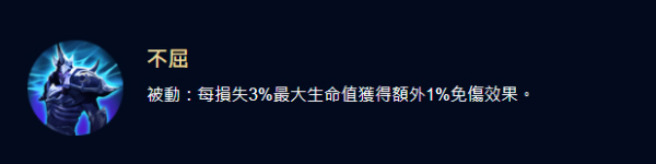 被动效果:血量每少3%,就多1%的免伤。