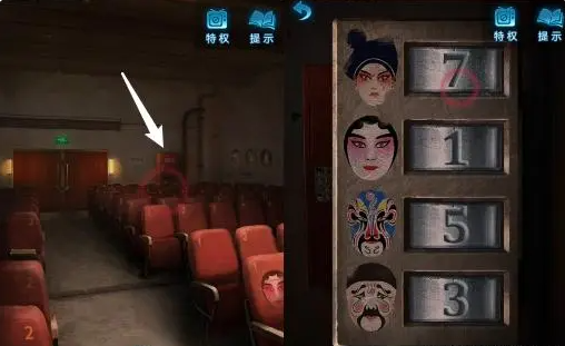 7、过来找到画着脸谱的座位,注意看,这些座位上的数字就是等会要用的密码。