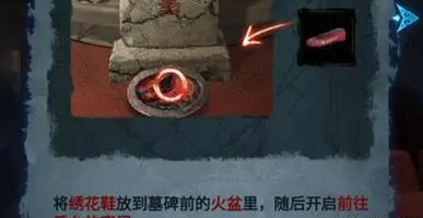 11、把刚到手的绣花鞋扔进墓碑前面的火盆里烧了,密室大门就开了,直接进去。