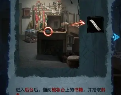 12、进了后台密室,先去点梳妆台上的书,能翻出来一张封条。
