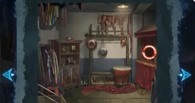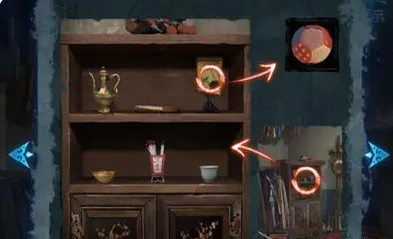 24、根据神龛给的线索,去调整仓库陈列架上那些戏曲道具的摆放位置,摆成截图里这样,就能拿到一个玩具球。