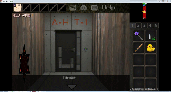 15、穿过激活的隧道,能在墙上看到新的线索“A=H T=I”。