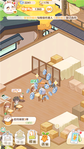 随着客流增加,可招募店员协助经营,分担点单、制作与上菜等操作,提升整体效率与收益。