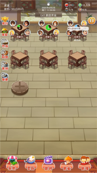开局给你个50平米的小破店,最多塞10张桌子。要是客人多到坐不下,你可以考虑扩租。但千万别上头,每个店面都得交租金,所以别脑子一热就瞎扩建。你得根据每天的客流量来规划,不然分分钟入不敷出,直接倒闭滚蛋。(※听开发的说,内测时一堆人就是这么玩死的…)