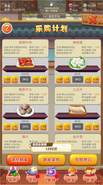 3.5 到了五级以后,菜品全开了,手动调不过来,老老实实用智能采购吧,别折腾了。