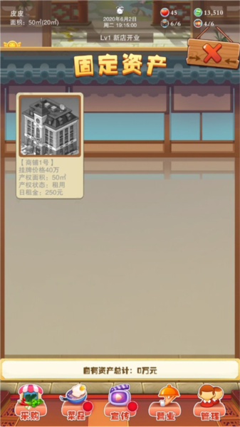 钱攒够了就去买固定资产,买了就能开连锁店,每周给你打钱。10个连锁店都开起来,每周光躺着就能收500多万。连锁店的收益跟你总店的利润有关,所以总店越赚钱,分店收益也越高。