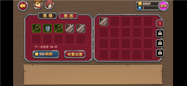 2、在商店购买装备与出售无需的装备,根据装备搭配角色技能。