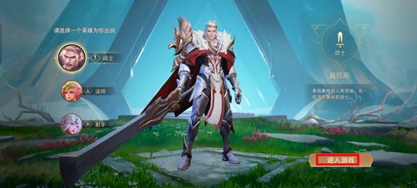 4、进到游戏里,会让你从三个英雄里挑一个你顺眼的。选完点进入游戏,这就算注册完成了,可以开搞了。