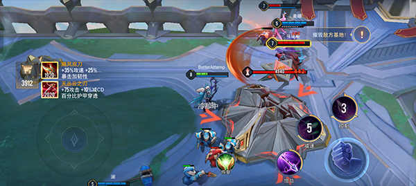 4、看到右下角那个最大的按钮没?那就是普通攻击,用它清理掉对面的小兵,这样咱家的塔就安全了。