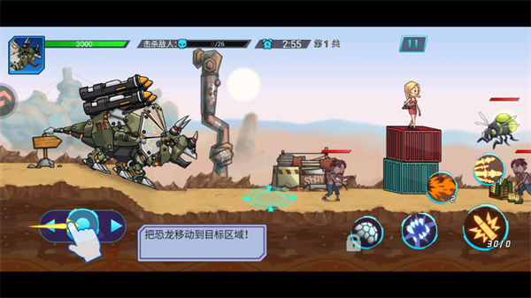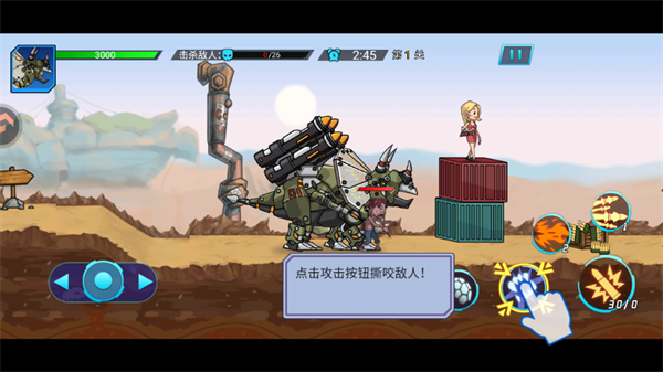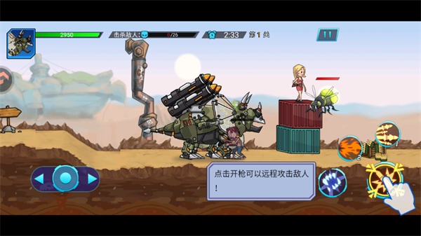 战斗里的操作,左手拇指搓那个虚拟摇杆控制走位,这套东西老玩家应该都知道,闭着眼都会。任务就是一路往前推,沿途找那些不长眼的敌人,清完图,进入下一关。