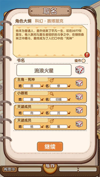 2、题材搭得好,评分会比较容易上去,直接选星星比较多的组合就可以,前期先用高契合的题材,第一本书会比较容易养起来;