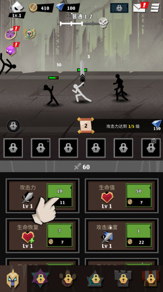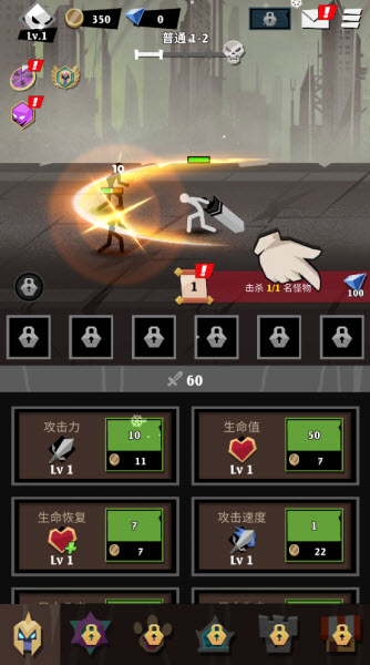 3、角色自定义这块儿搞得还行。外观、武器、装备和技能都能自己捣鼓,你想玩暴击流还是肉盾流,都能配出来,打造一个只属于你的火柴人。