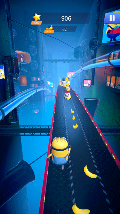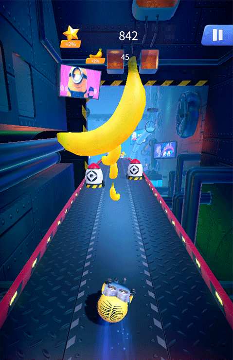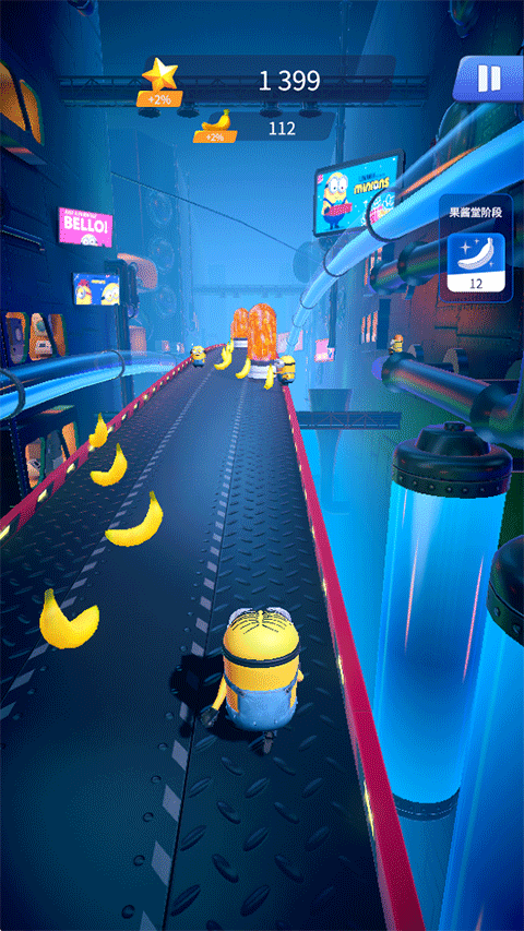 4、小黄人本身就够萌了,你还能用跑酷捡来的香蕉给它们换各种奇葩的衣服和装备。没事戳戳屏幕上的小黄人,它还会给你各种搞笑的反应,挺解压的。