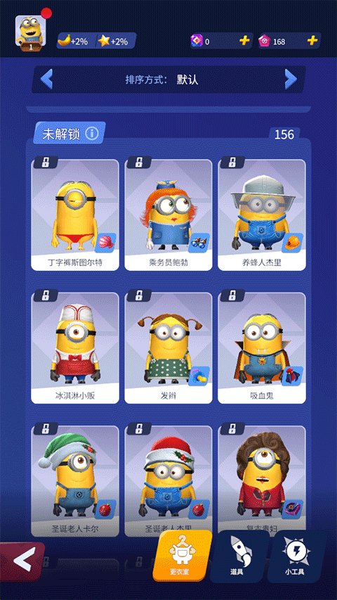 4、衣服、武器、道具都能自己换,想把你的小黄人打扮成啥样都行。