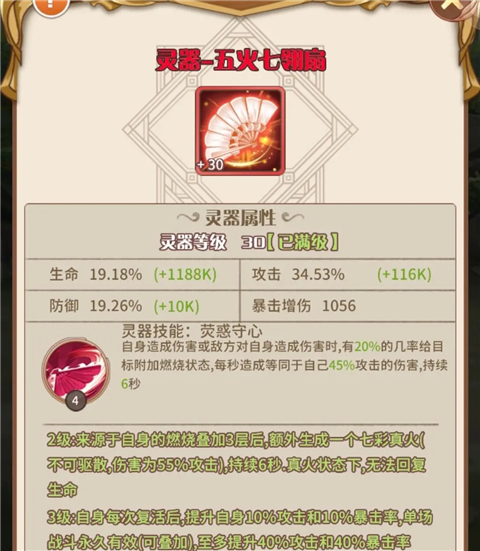 1.灵器这玩意儿有4条基础属性。头两条是固定的攻击和生命,但每个角色成长率不一样;后两条属性是随机的,看脸。