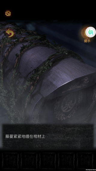 2、一进来就是一片迷雾,隐约能看到一口棺材。别犹豫,直接点击那口棺材,镜头就会拉近。