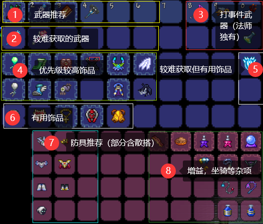 伤害高,攻击段数多,上面这些就是我个人推荐的泰拉瑞亚肉山后法师装备,里面有些装备数据可能记得不太准,所以一切还是以游戏里的实际数据为准。