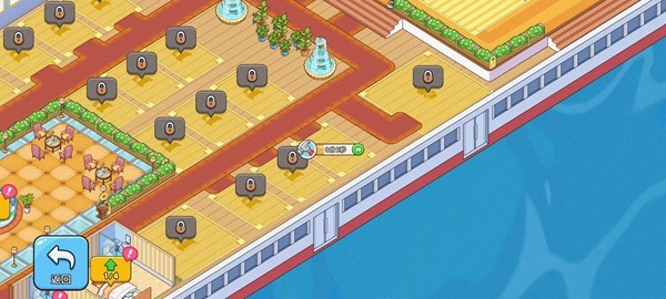 1、这游戏的赚钱逻辑很简单,就是在船上盖各种设施,游客们在航行的时候会自己去消费,你就躺着收钱就行了。