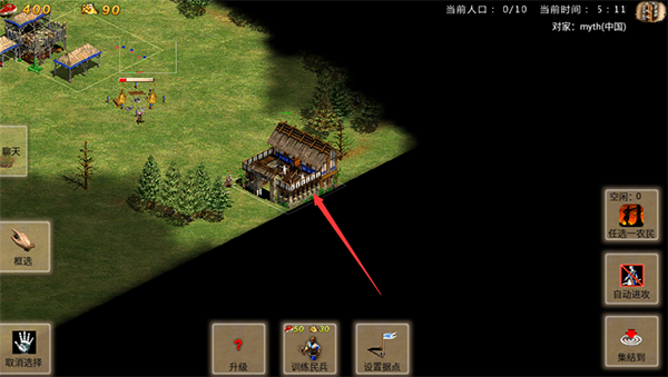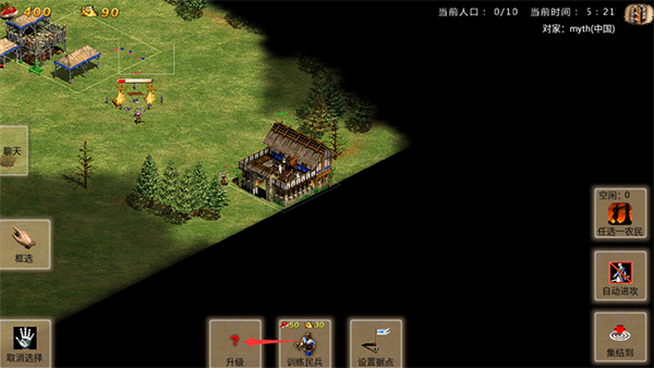 6、点一下你的主基地,也就是市政厅,能花钱造更多的农民,还能点那些小图标升级时代和科技。