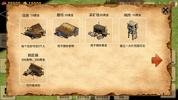 2、生产资源:得造采矿场、农田这些东西来搞资源,食物、木头、金子缺一不可。资源多了还能卖掉换钱,路子很活。