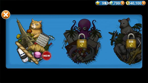 2、另外,游戏里能操控的动物不止一种,皮肤也给了一大堆,免得你玩久了视觉疲劳。讲真,UI稍微有点复古,但功能确实没毛病。场景也很多样,每个场景里能吃的东西都不一样,体验感还算不错。玩法总结起来就一句话:控制你的角色,吃小的,躲大的,猥琐发育,然后变大。关卡数量也足够多,能让你玩上好一阵子。