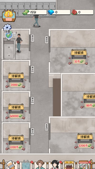 3、引导会让你先解锁第一个最基础的设施,也就是一个浴室,这是你开张的第一步。