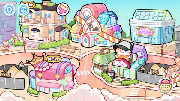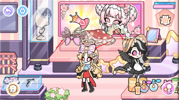 1、家具、饰品、小道具给得相当大方,种类多到眼花。什么动物玩偶、卡通壁纸、彩虹地毯,反正你想得到的可爱玩意儿基本都有。