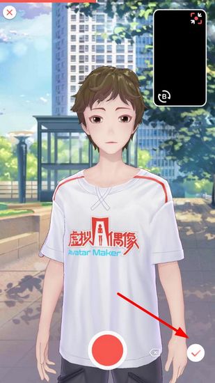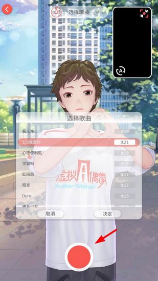 4. 第二种方法就更自由了。直接在主界面点那个红色的录制按钮,进入动捕模式。然后把手机摄像头对准你自己,你跳什么动作,屏幕里的虚拟形象就会模仿你的舞姿,真正做到人偶合一。