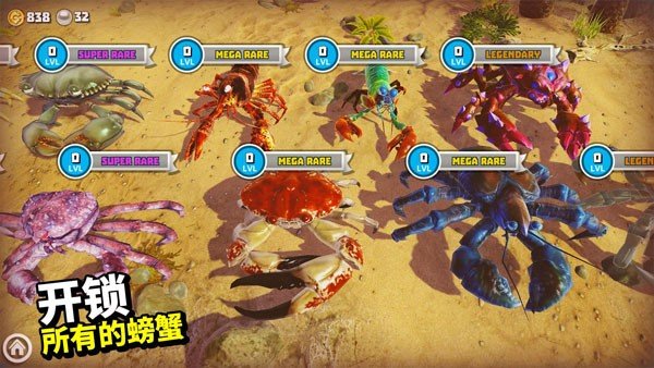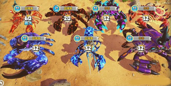 2、游戏里的螃蟹种类挺多,可以慢慢收集和升级,打造你自己的螃蟹大军。还能解锁各种技能和皮肤,搞得花里胡哨的同时战斗力也上去了,挺有意思。