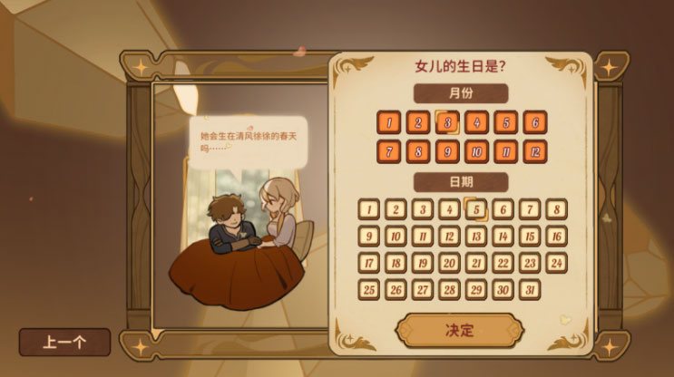 2、为女儿设定名字、血型、生日等基础信息,即可正式开始游戏。