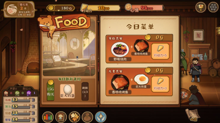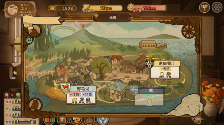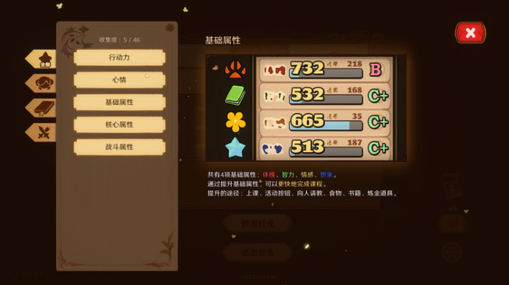 3、基础属性:包括体魄、智力、情感、想象,通过课程、活动、食物等方式提升。