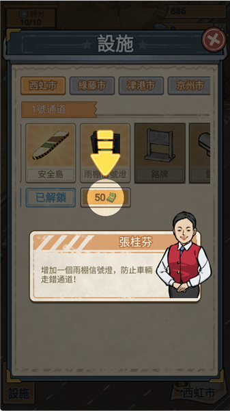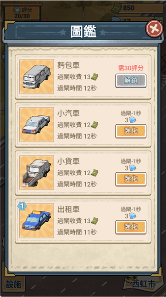 2、攒了点小钱之后,记得第一时间把基础设备给解锁了,这样收钱效率才能提上来。不然等车流一多,堵成一锅粥,司机们骂骂咧咧的,你的评价就得掉。