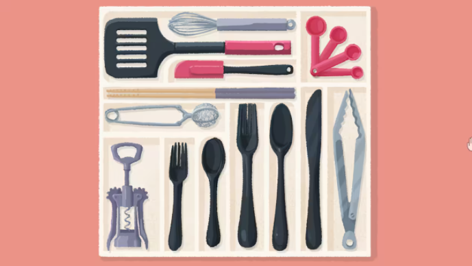 4、还是老一套,把东西归位。右上角那堆勺子,得摆成一个扇形,别摆错了。