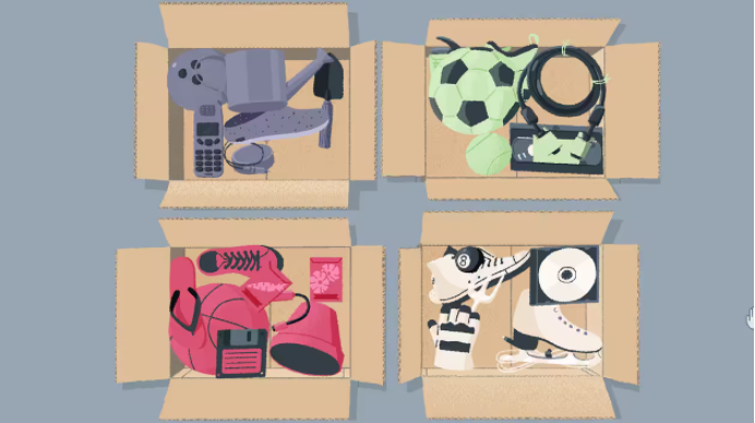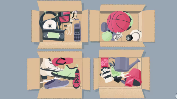 按物品属性来分,比如电子产品、球、鞋子、园艺工具,各归一类。
